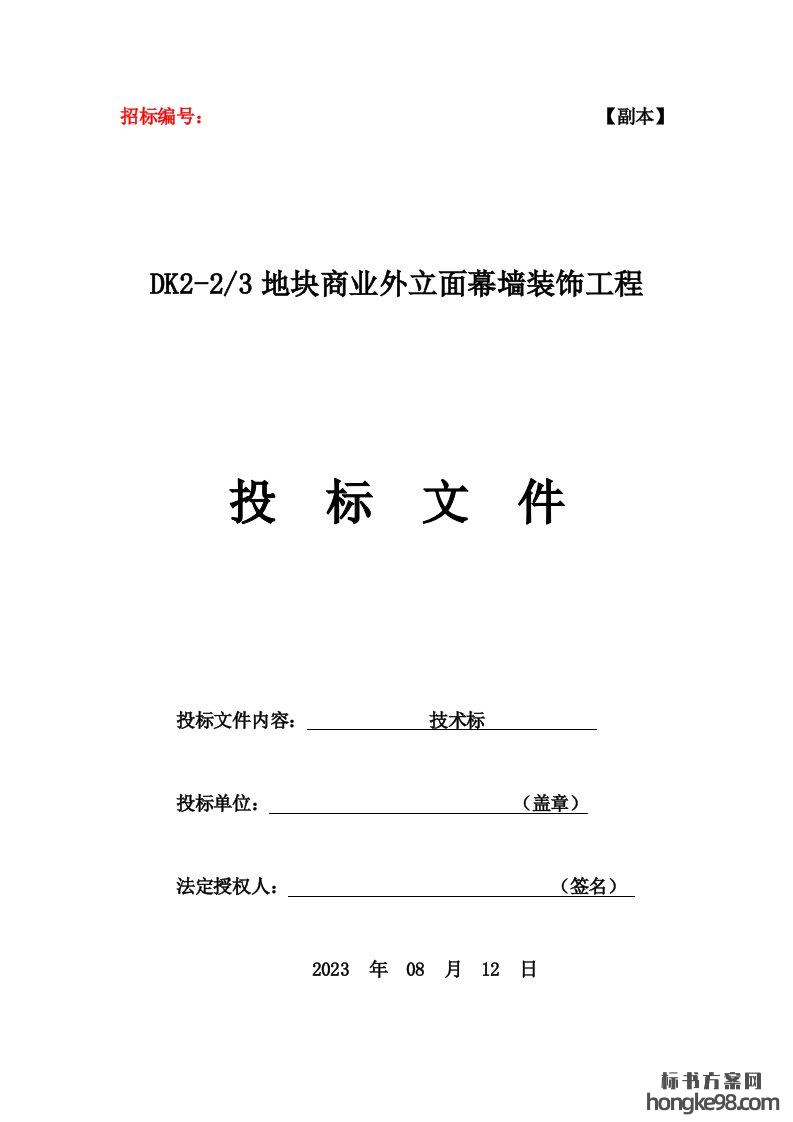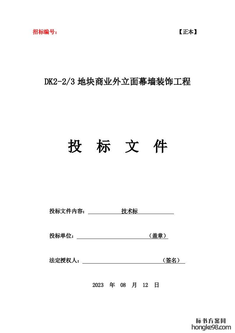 标题:DK2-23地块商业外立面幕墙装饰工程投标方案(413页)