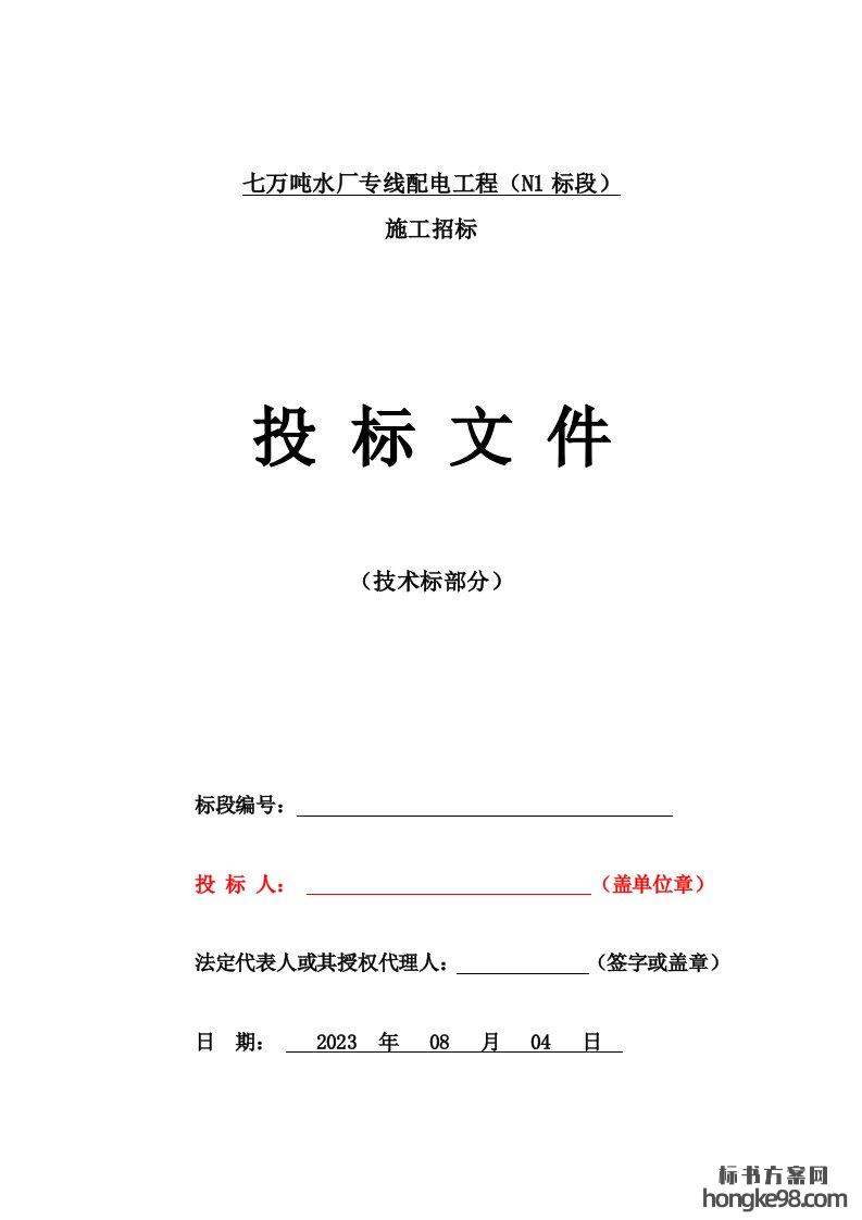 标题:西沙七万吨水厂专线配电工程(N1标段)投标方案(277页)