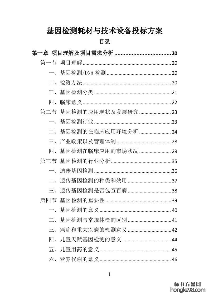 标题:基因检测耗材与技术设备投标方案413页