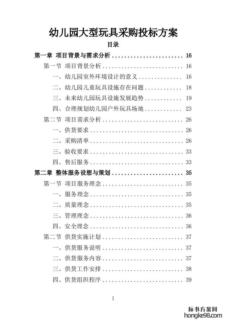 标题:幼儿园大型玩具采购投标方案390页