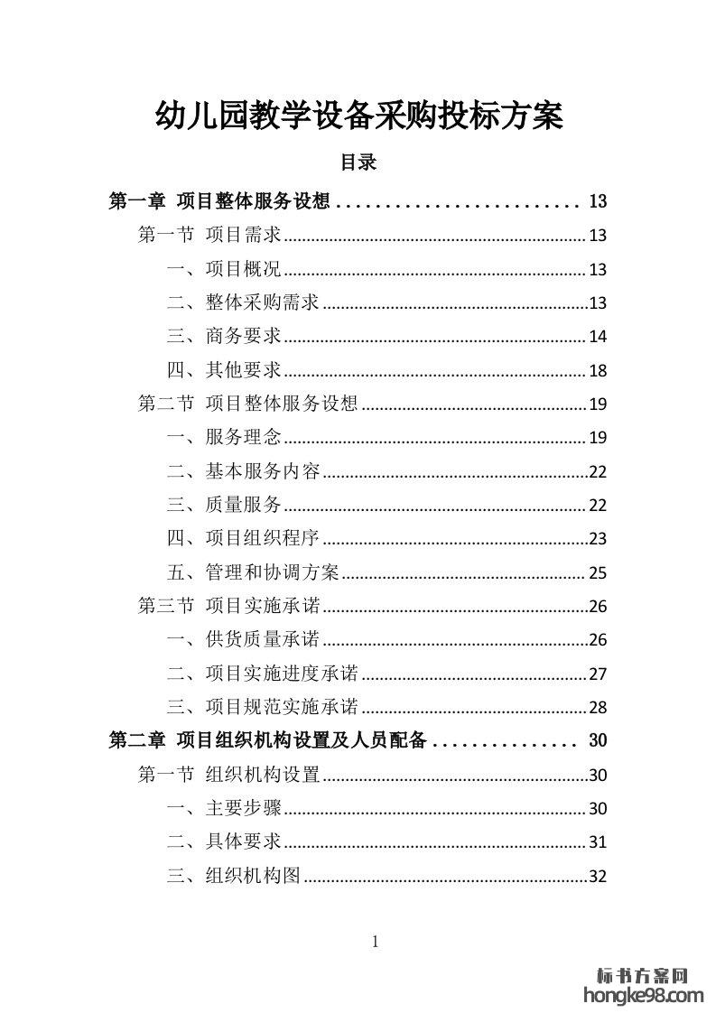 标题:幼儿园教学设备采购投标方案355页
