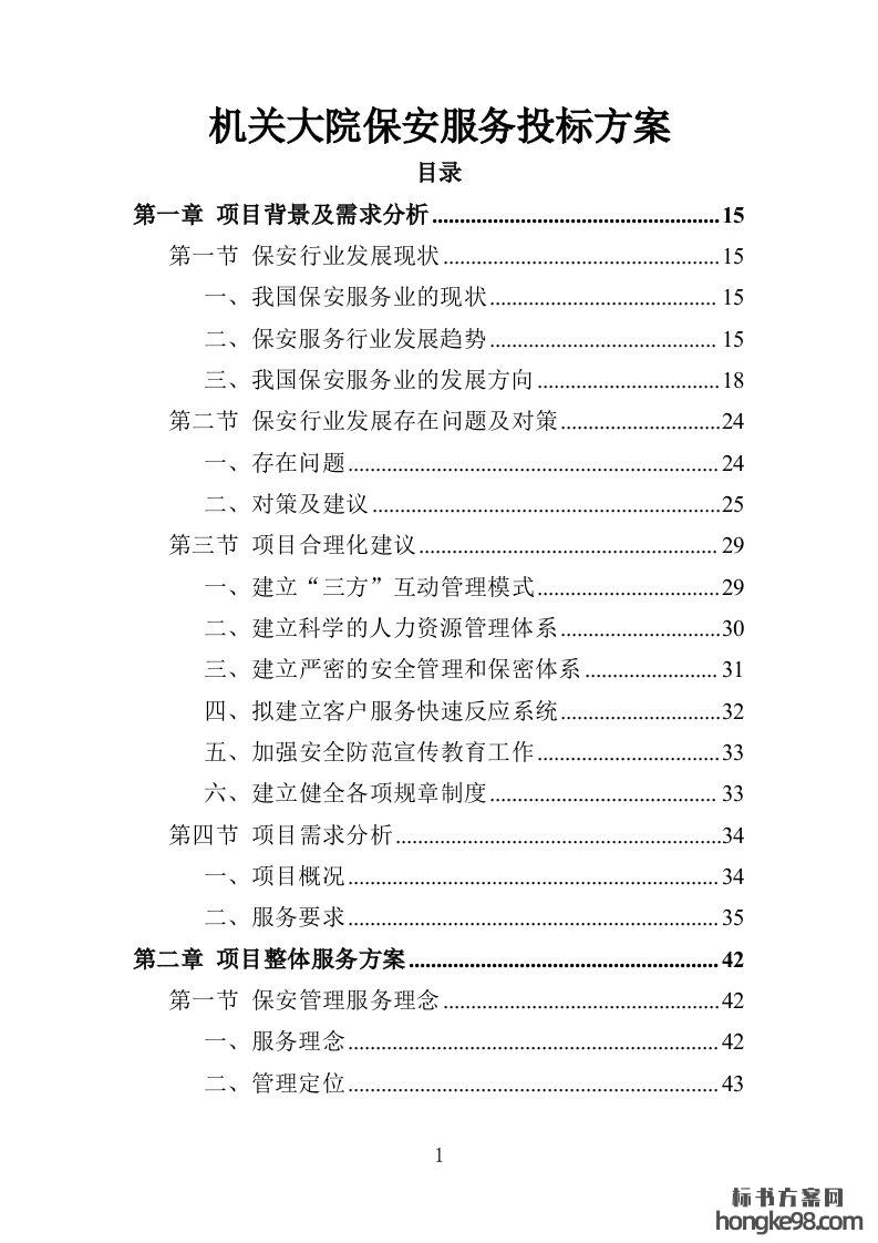 标题:机关大院保安服务投标方案427页