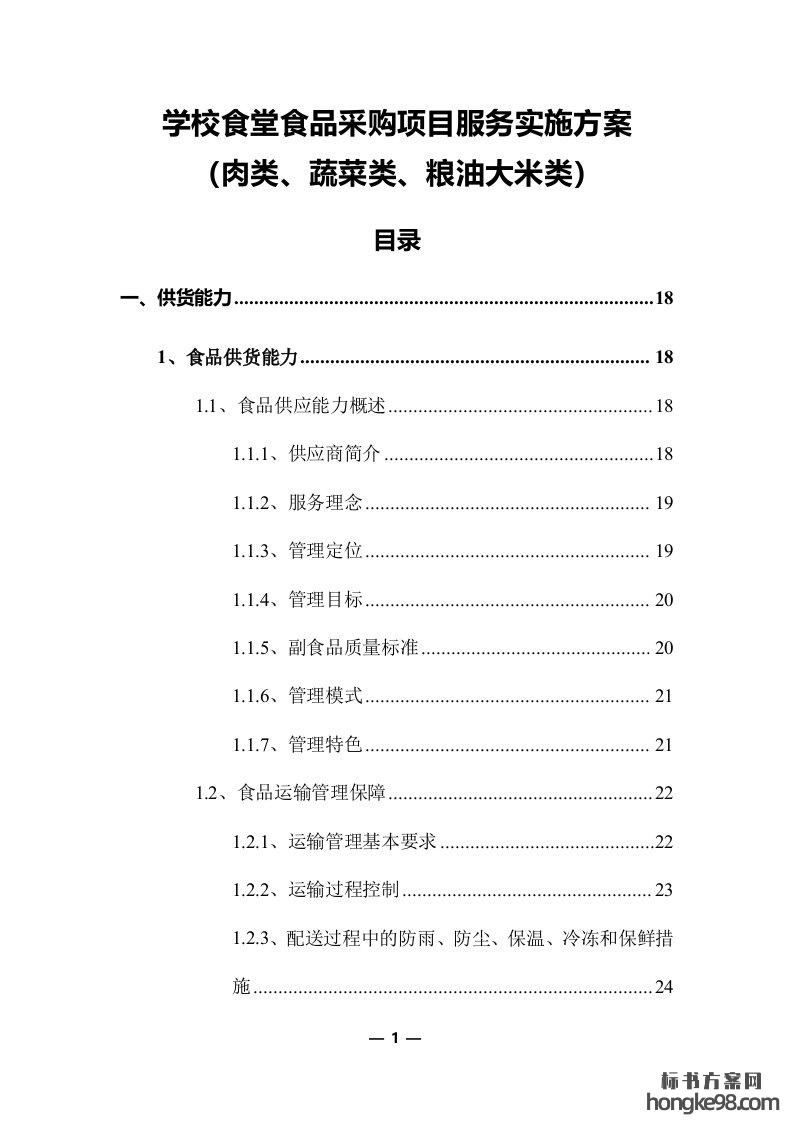标题:学校(校园)食堂食品采购服务实施方案(肉、蔬菜、粮油大米类)投标方案 438页