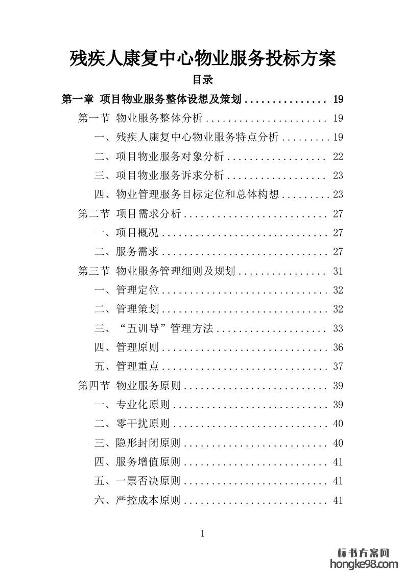 标题:残疾人康复中心物业服务投标方案461页