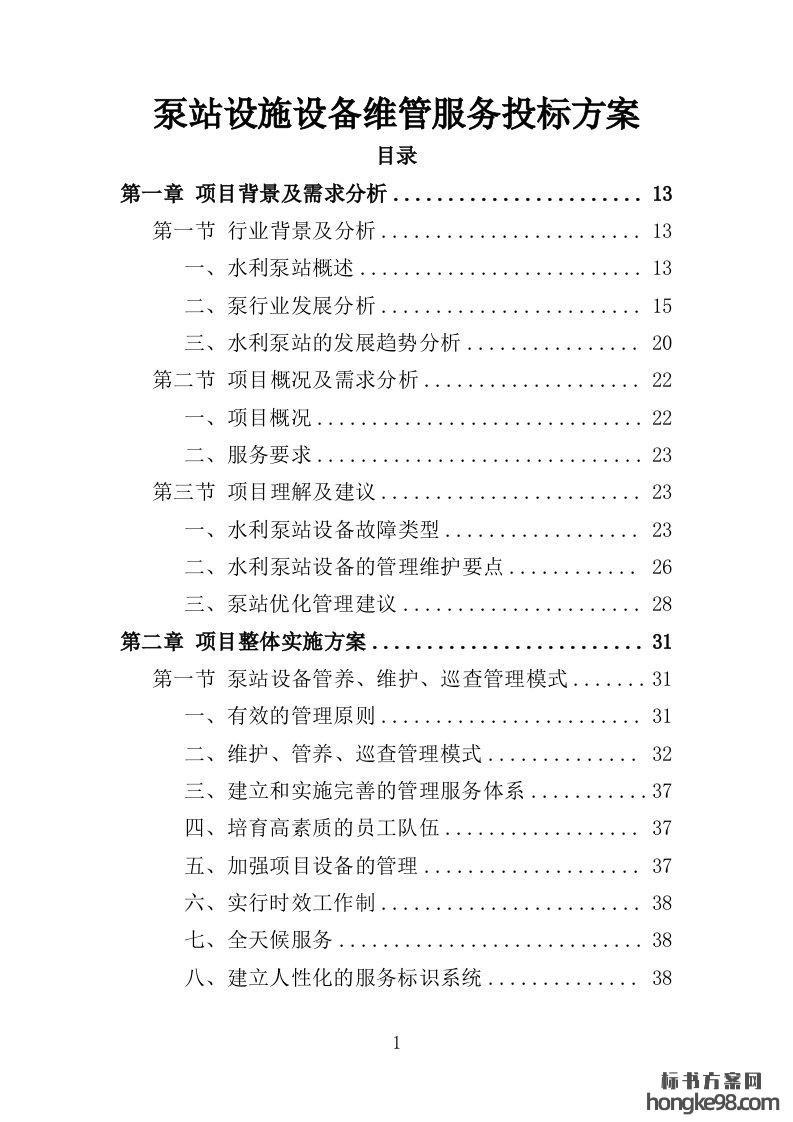 标题:泵站设施设备维管服务投标方案486页