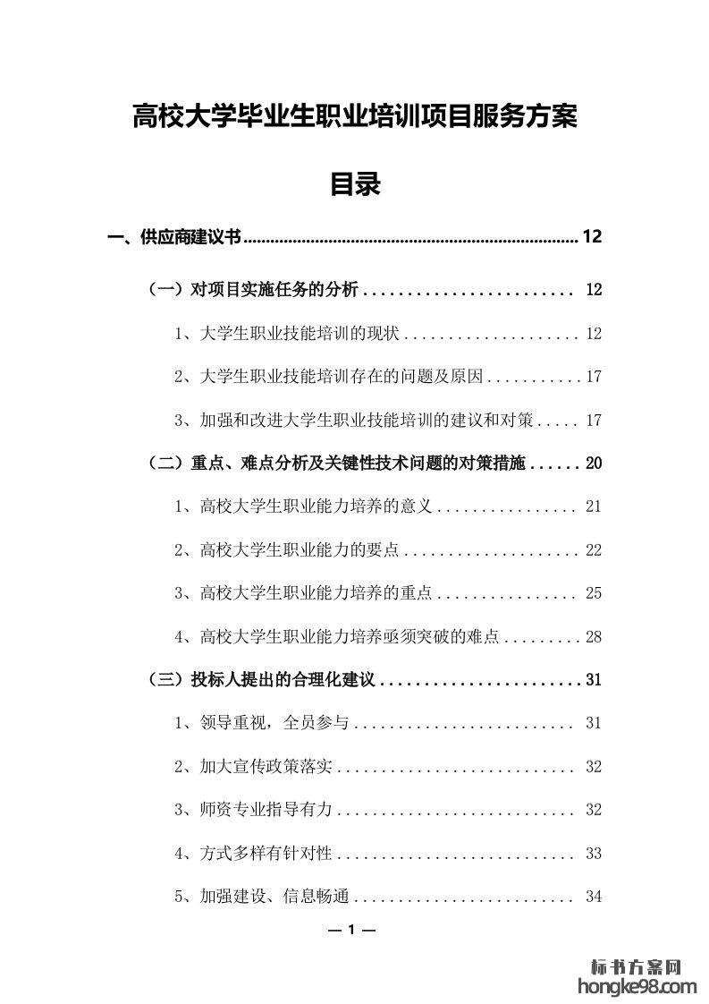 标题:高校(校园)大学毕业生职业培训项目投标方案311页