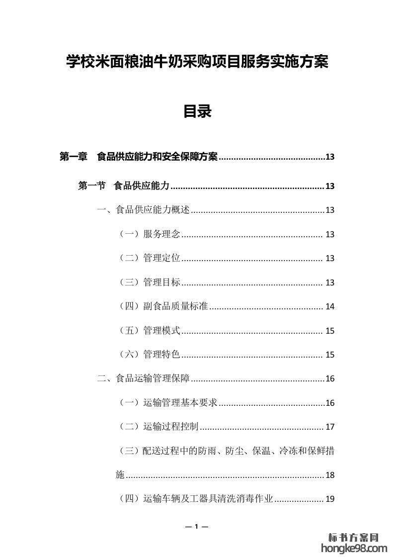 标题:学校(校园)米面粮油牛奶采购项目服务实施投标方案332页