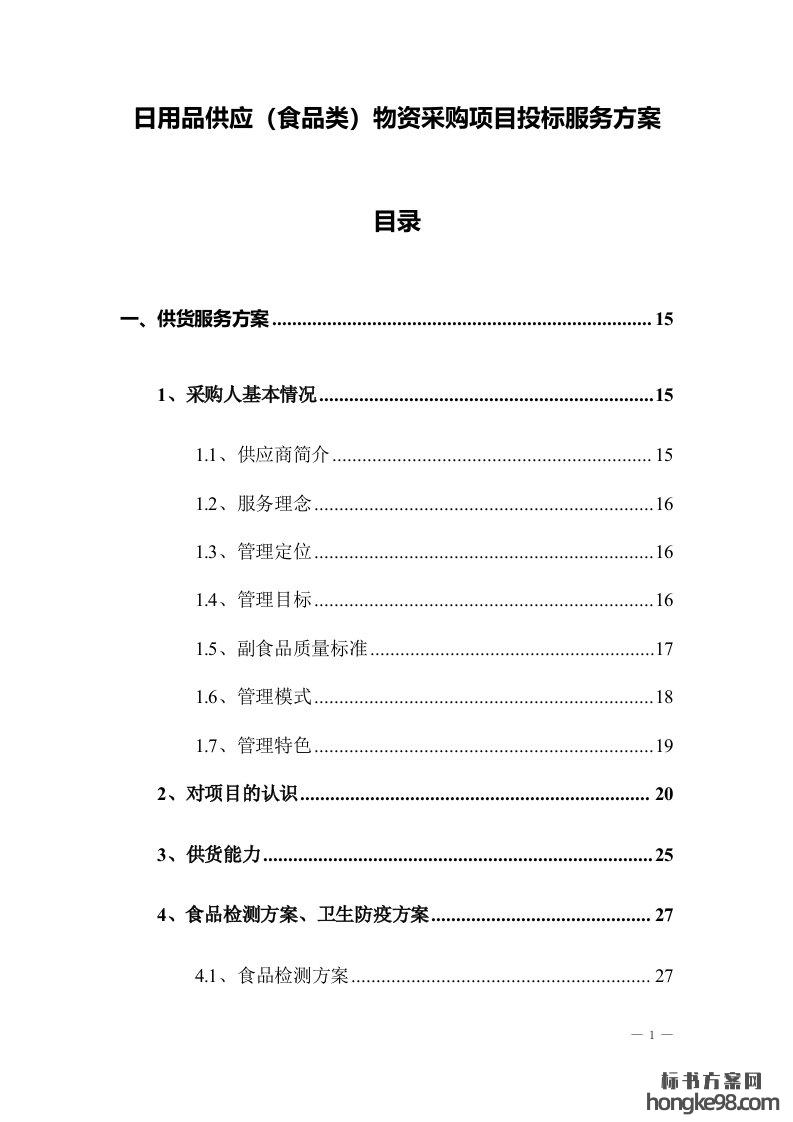 标题:日用品供应(食品类)物资采购项目投标服务投标方案359页
