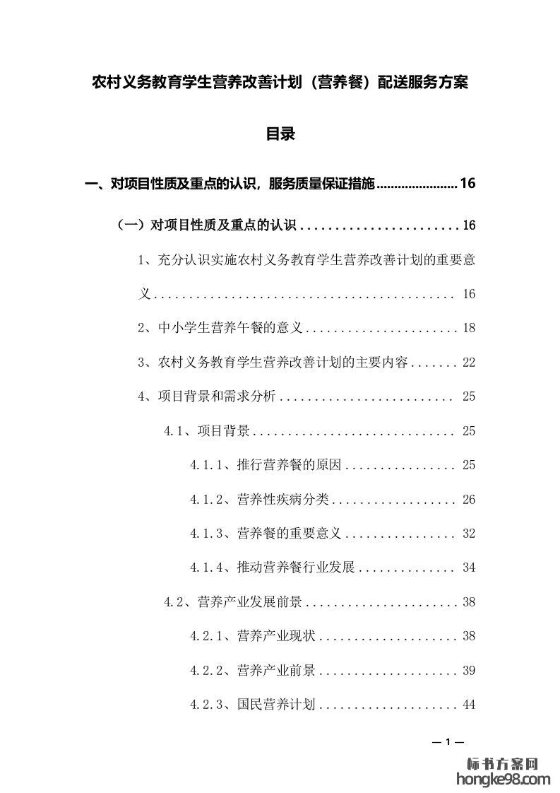 标题:农村义务教育学生营养改善计划(营养餐)配送服务投标方案365页