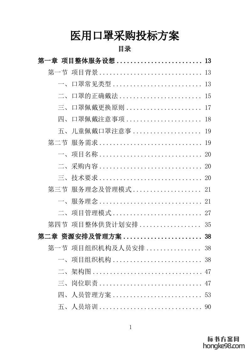 标题:医用口罩采购投标方案358页