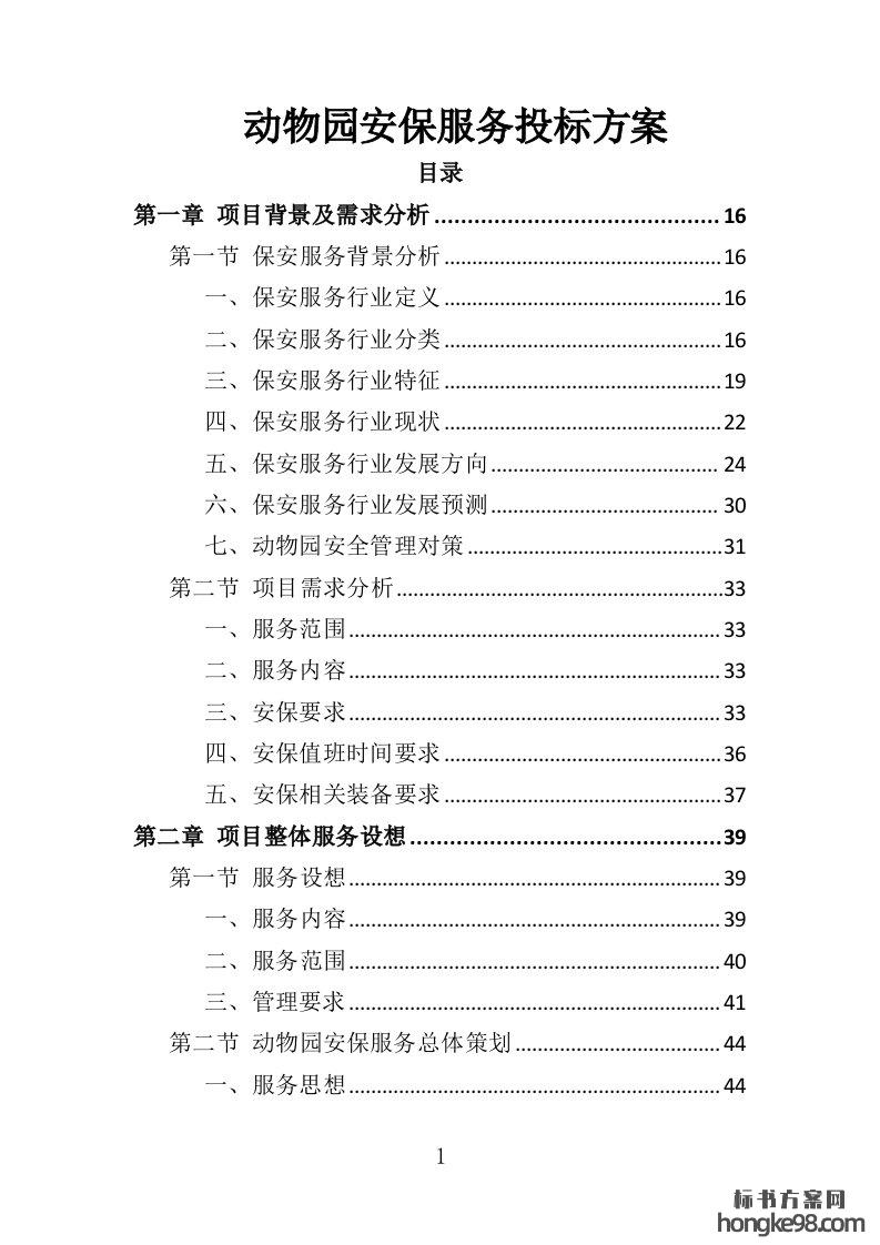 标题:动物园安保服务投标方案354页