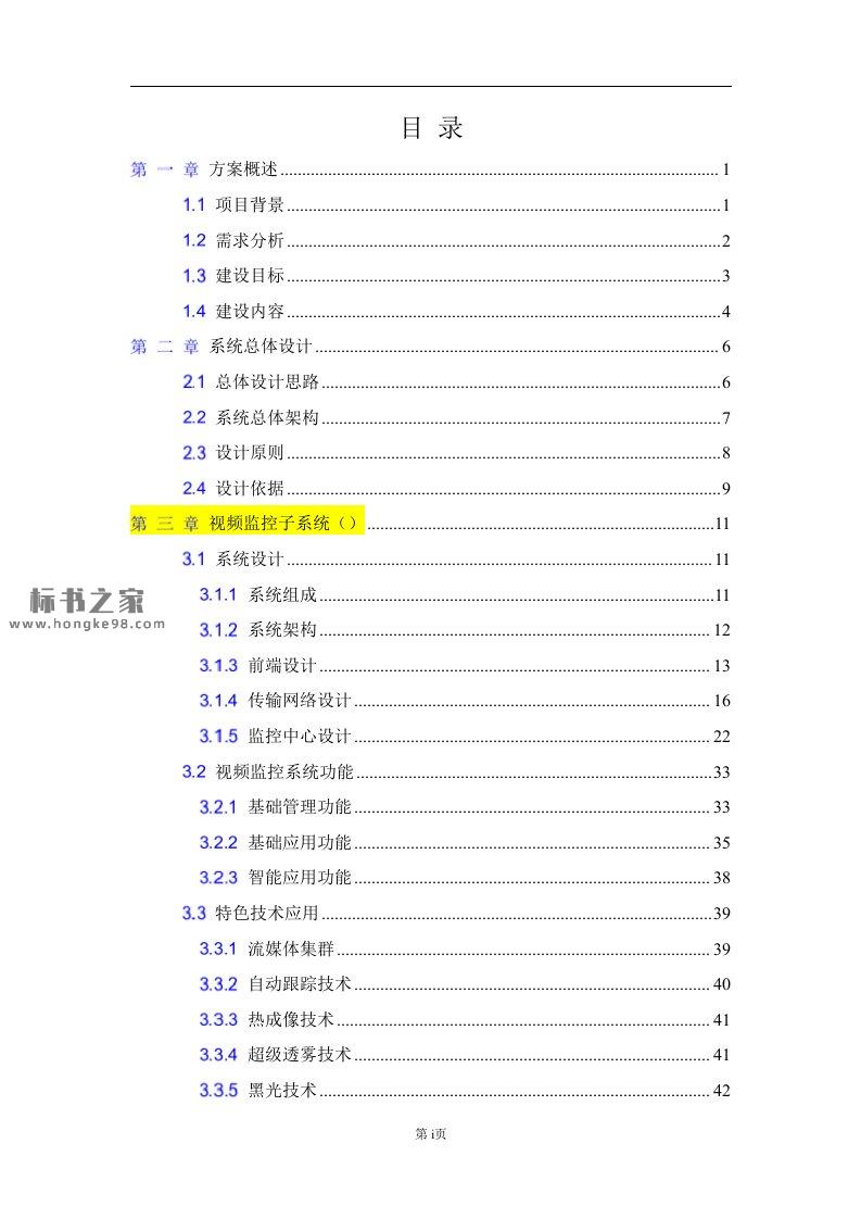 标题:行政办公区办公大楼综合安防系统项目设计方案技术投标文件正文(127页)
