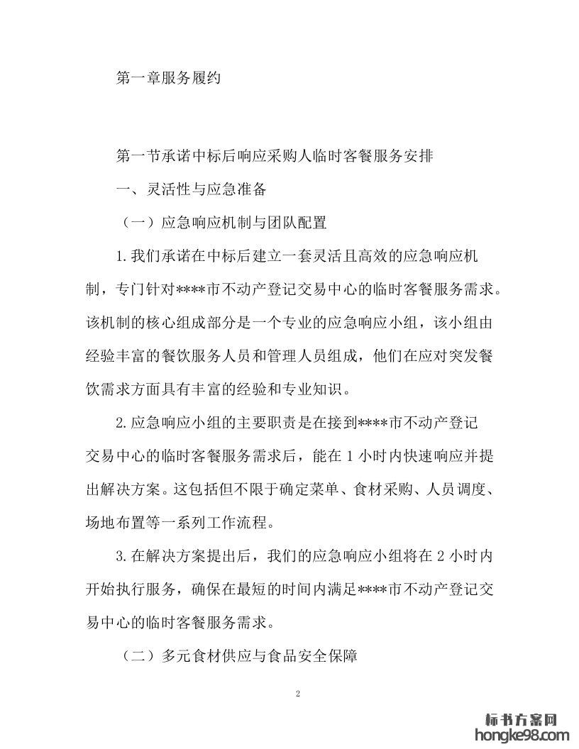 标题:不动产登记交易中心食堂餐饮外包项目投标方案130页
