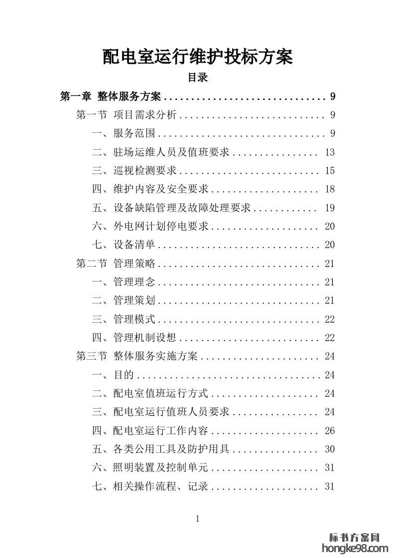 标题:配电室运行维护维保投标方案261页