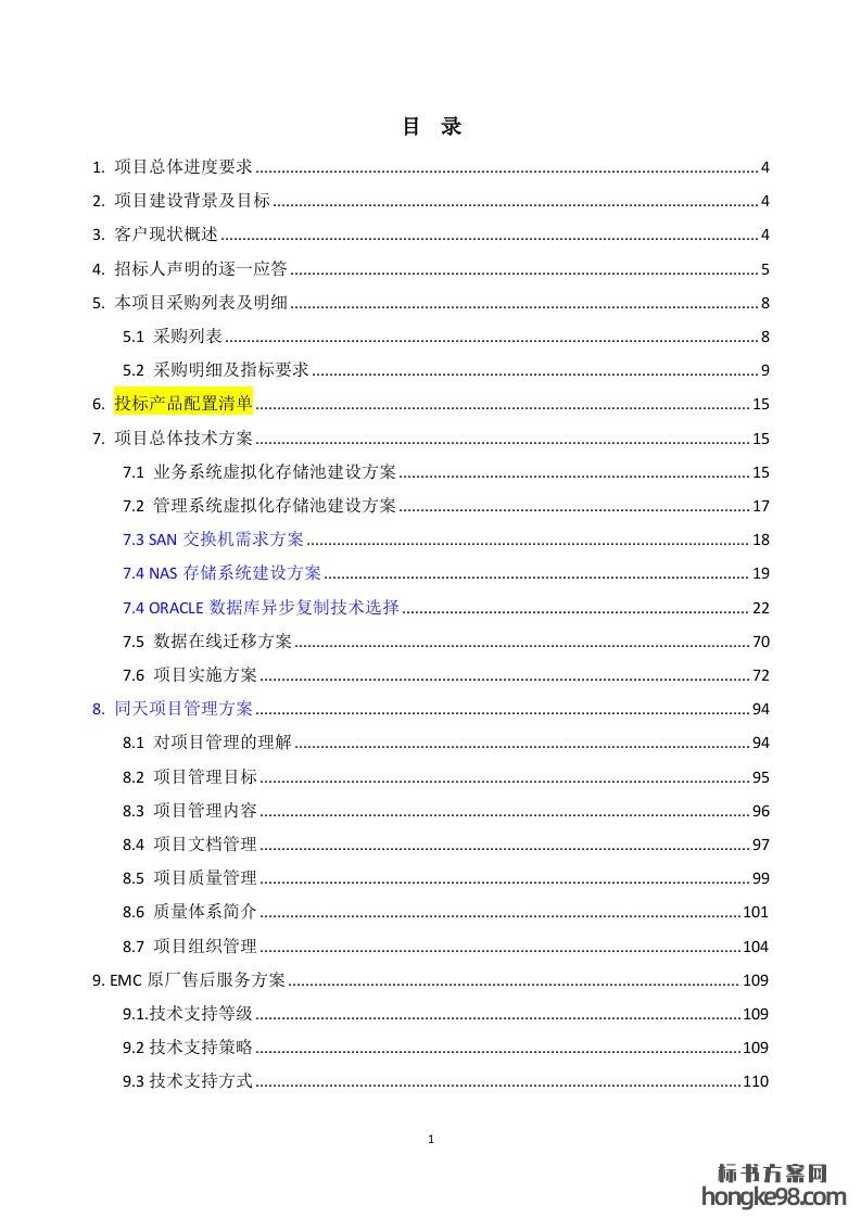 标题:数据中心存储系统设备及集成服务采购标书投标技术方案图文(206页)