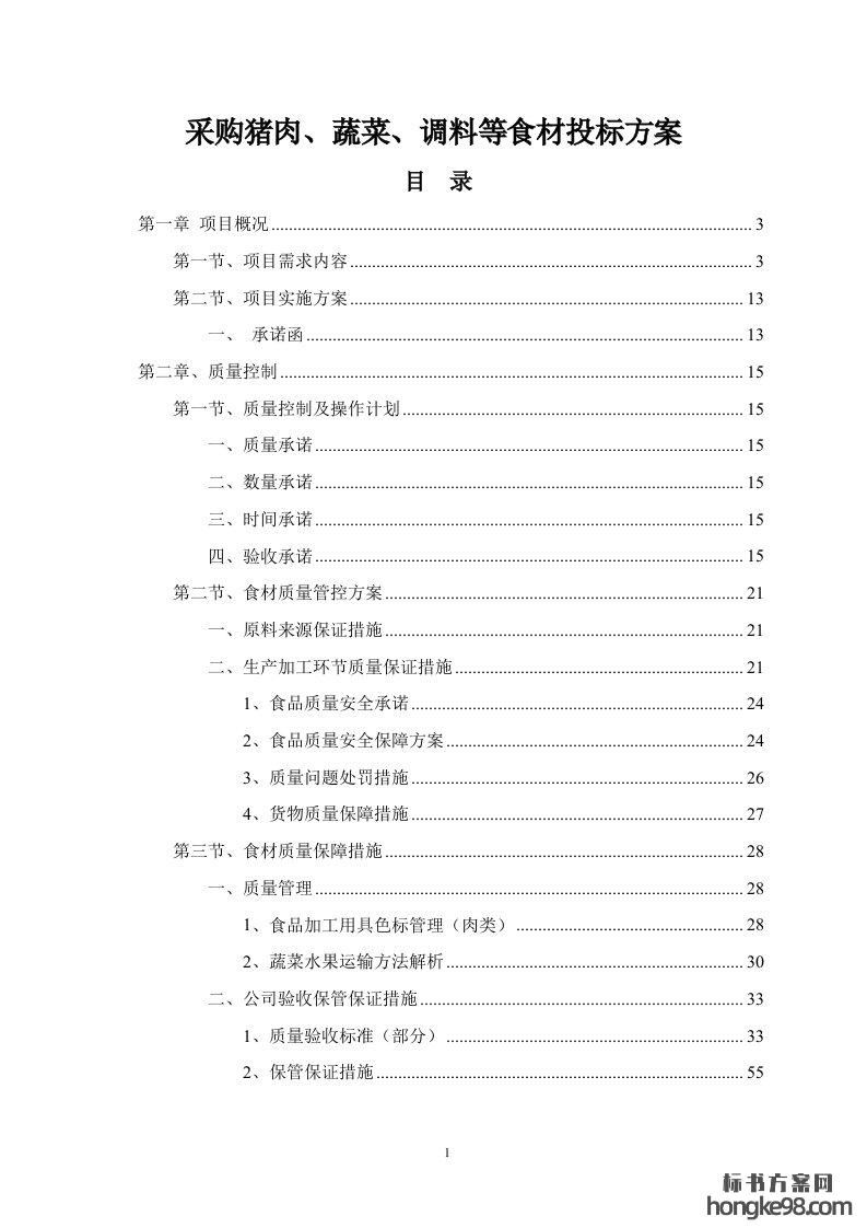 标题:采购猪肉、蔬菜、调料等食材标书投标技术方案图文(76页)