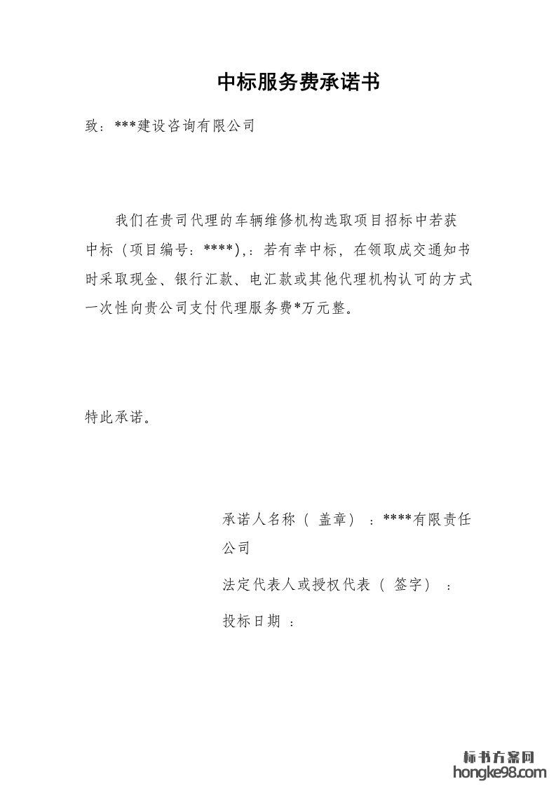 标题:投标中标服务费承诺书(1页)