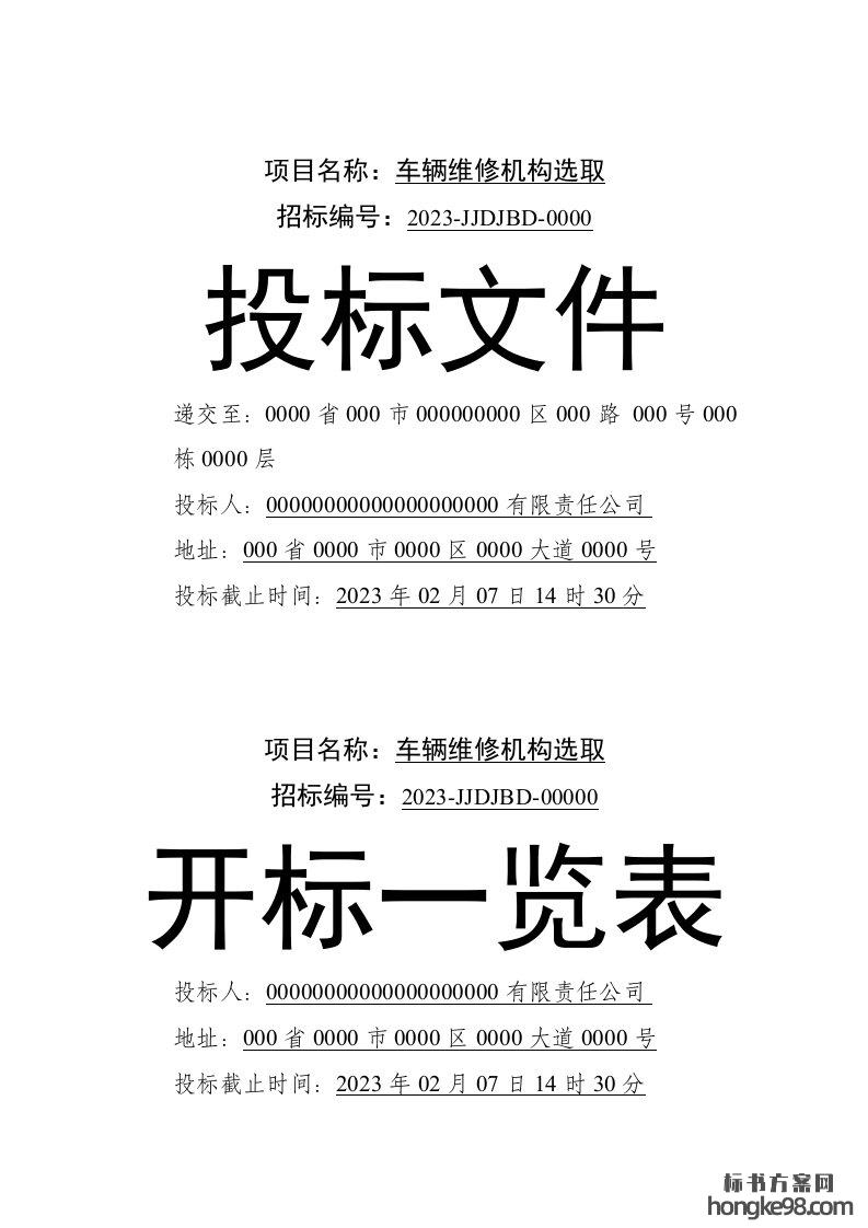 标题:投标标书封装文件(2页)