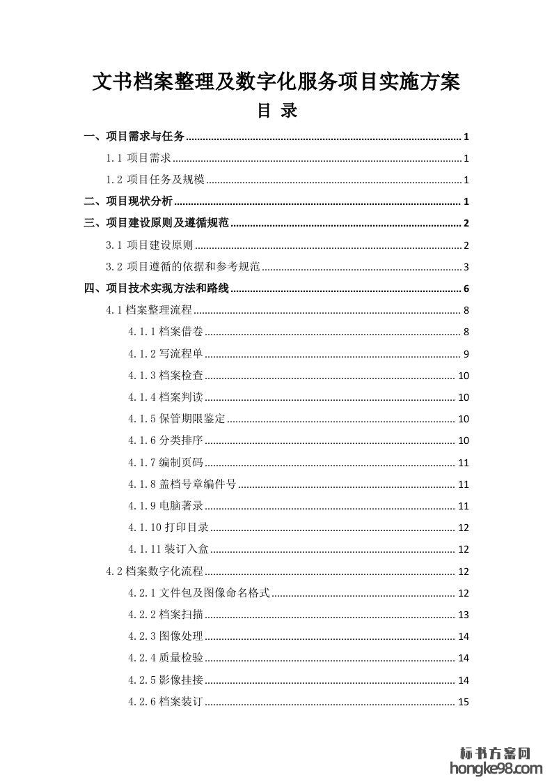 标题:文书档案整理及数字化项目实施方案(技术标 53页)