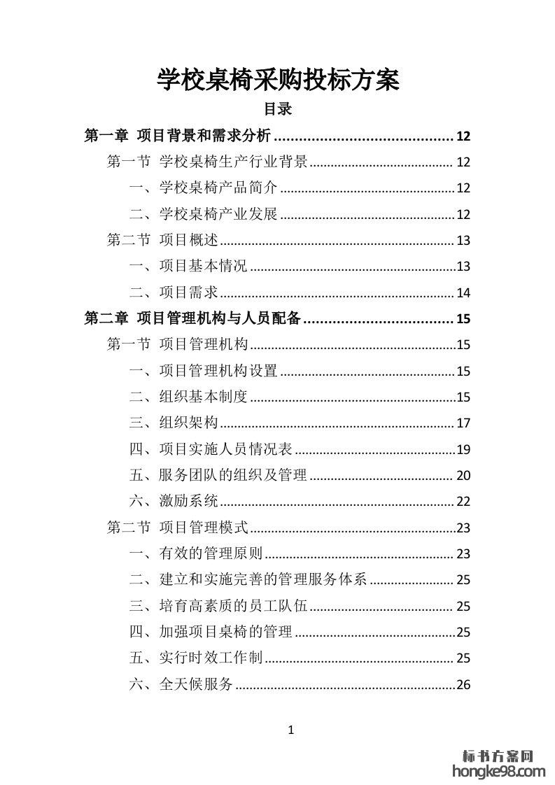 标题:中小学(校园)升降桌椅供货方案350(349页)