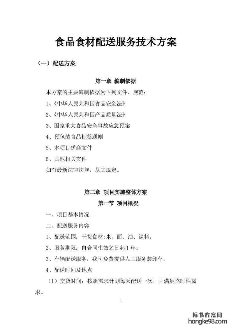 标题:食品食材配送服务技术方案及应急预案(257页)