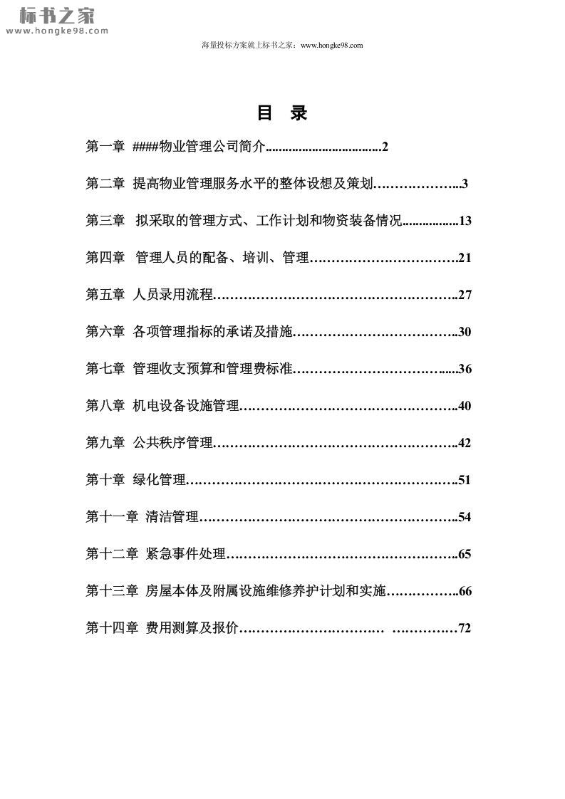标题:物业服务方案投标文件(77页)