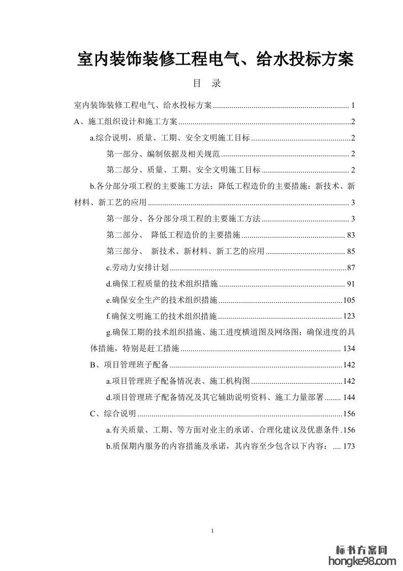 标题:内装饰装修工程电气、给水标书投标方案(176页)