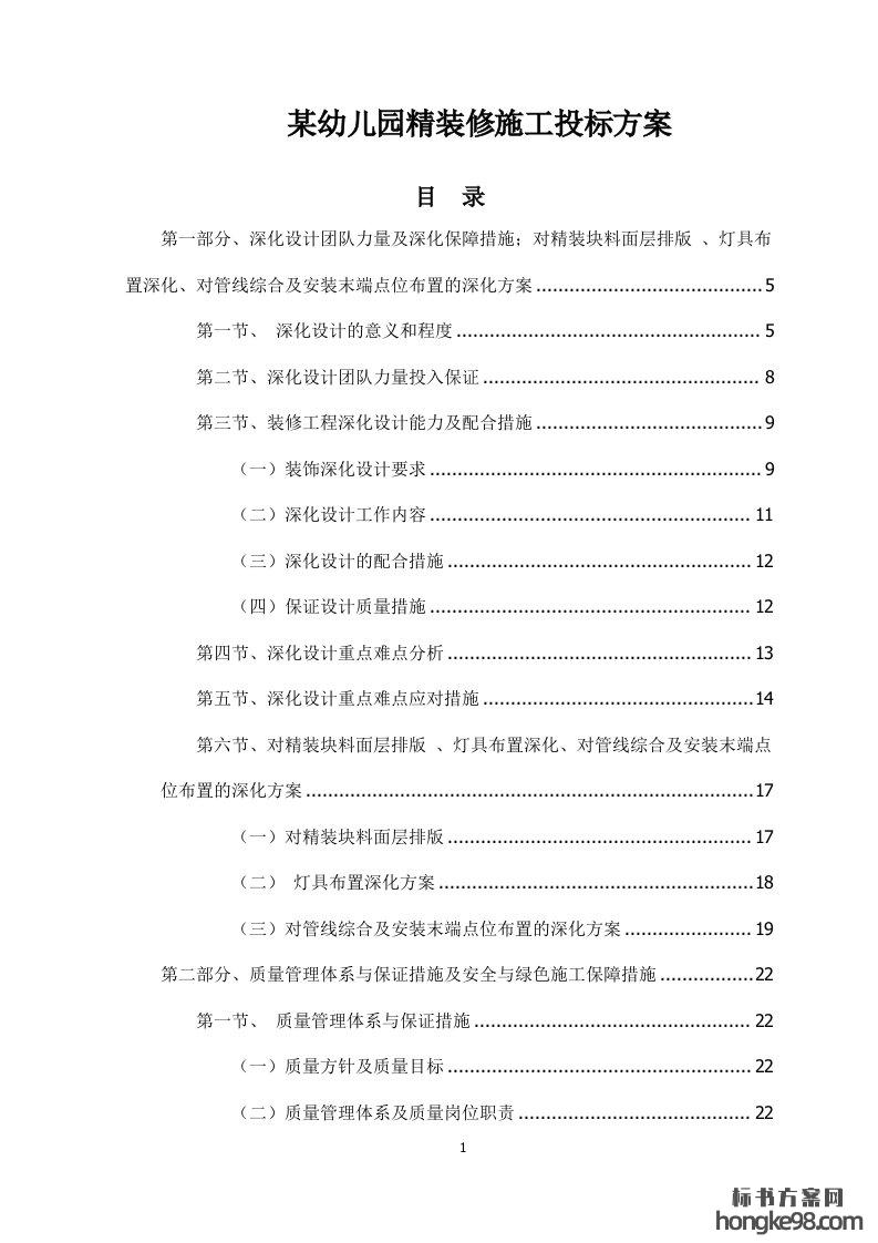 标题:某幼儿园精装修施工标书投标方案(175页)
