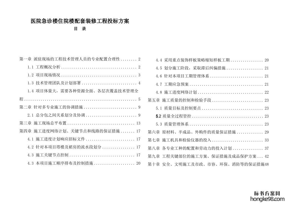 标题:图表医院急诊楼住院楼配套装修标书投标方案A纸(51页)