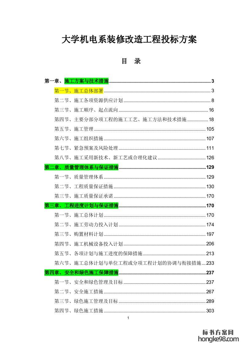 标题:大学(校园)机电系装修改造工程标书投标方案(350页)