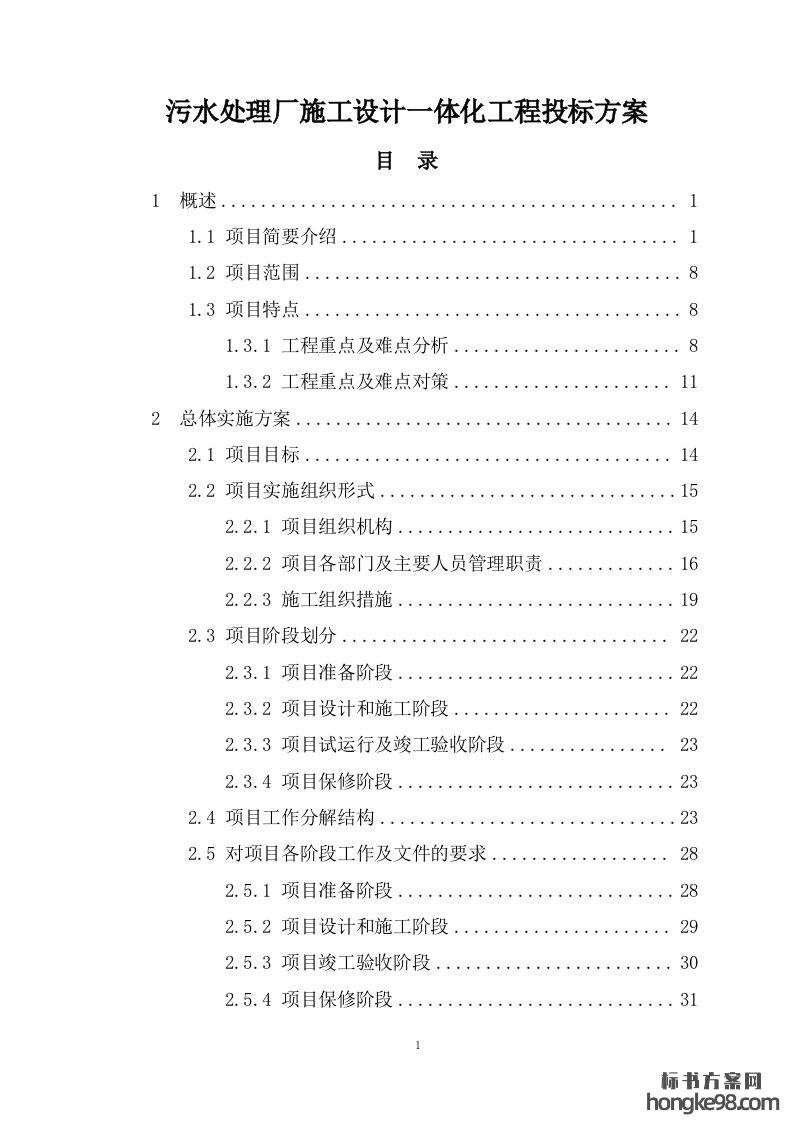 标题:污水处理厂施工设计一体化工程标书投标方案(269页)