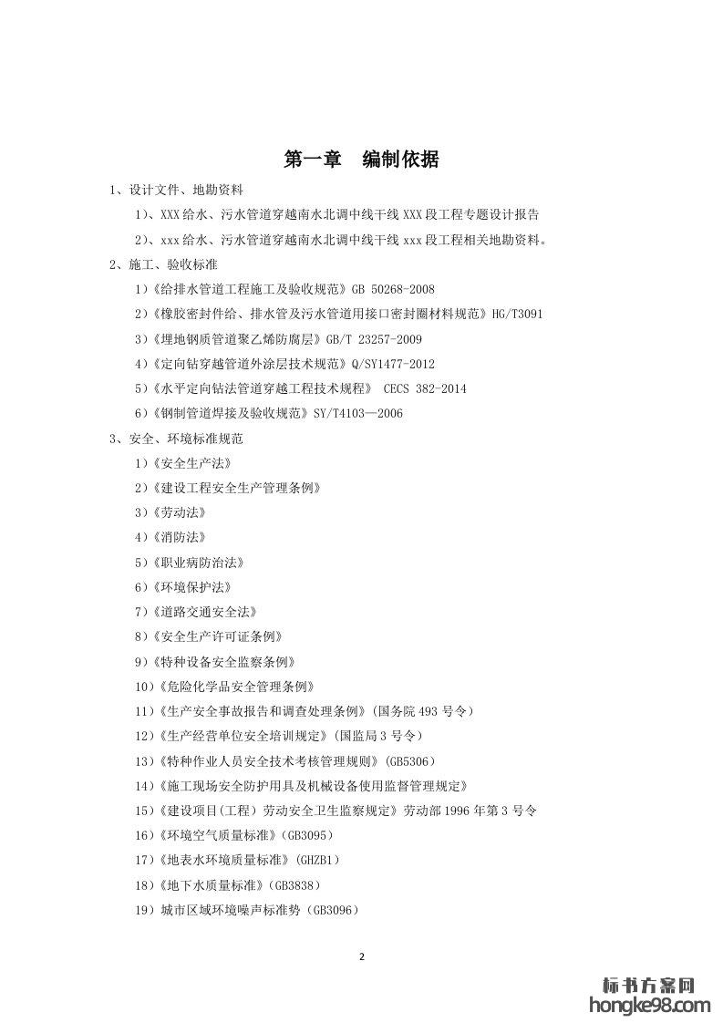 标题:给水及污水管道穿越南水北调中线工程标书投标施工方案(72页)
