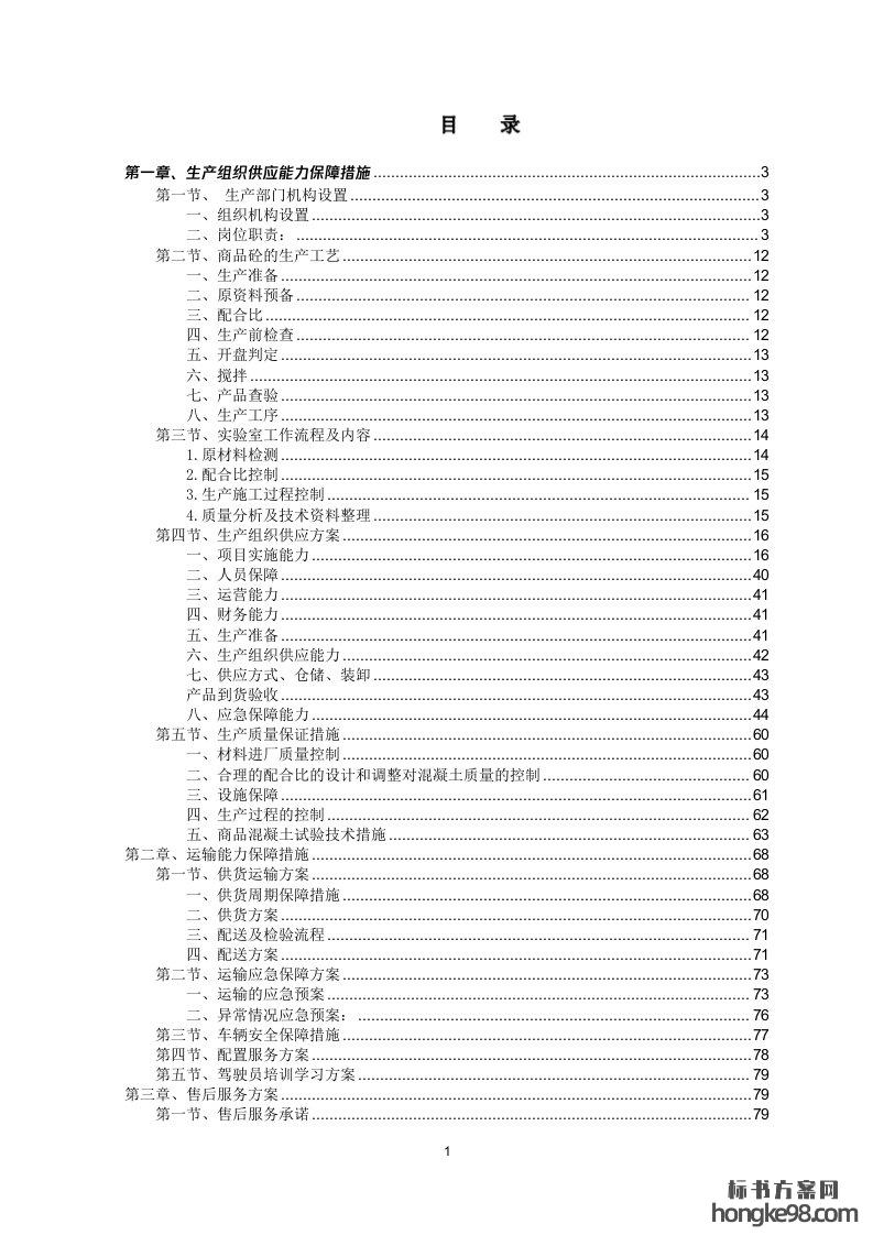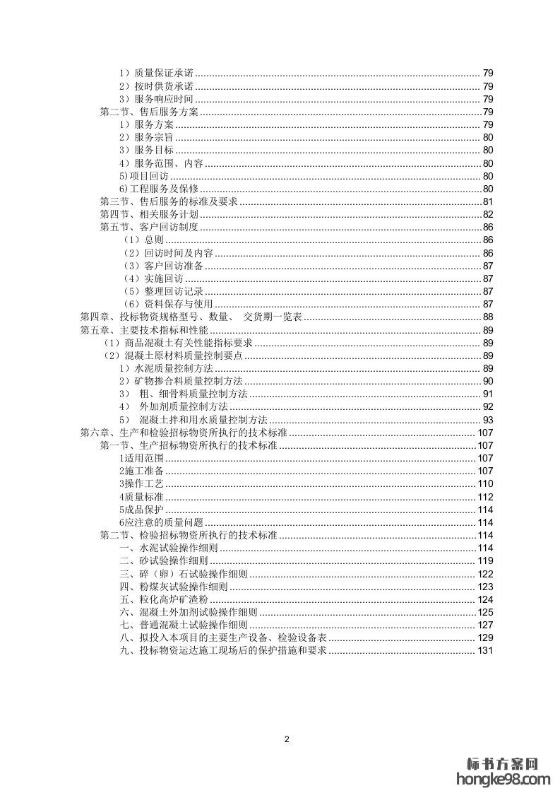 标题:商品混凝土采购标书投标方案(134页)