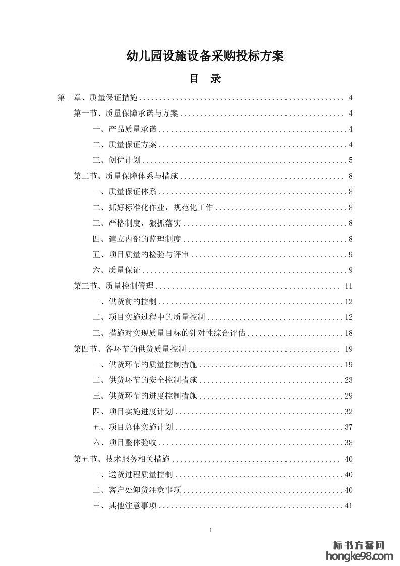 标题:幼儿园设施设备采购标书投标方案(130页)