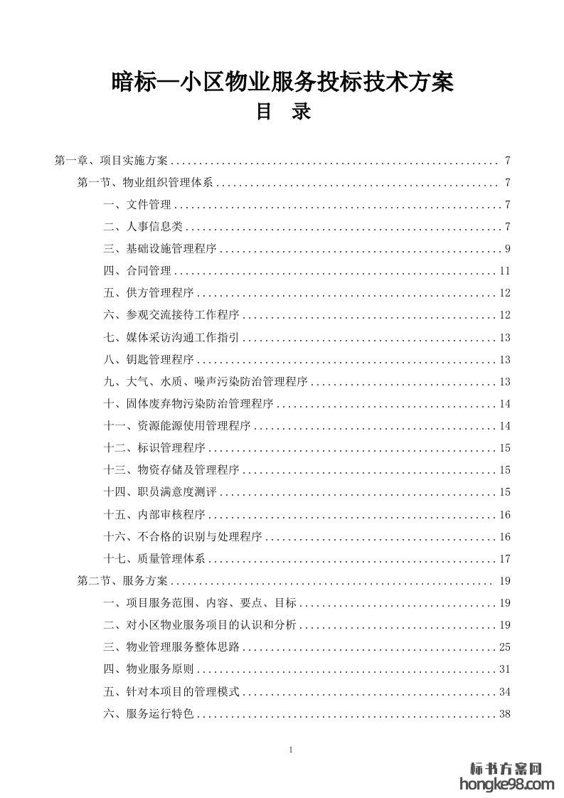 标题:小区物业服务标书投标技术方案(597页)