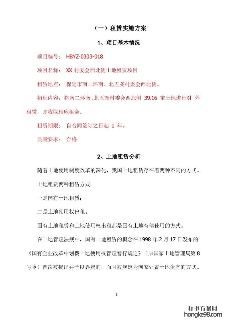 标题:某村委会西北侧土地租赁项目标书方案(80页)