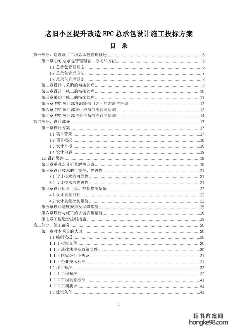标题:老旧小区提升改造EPC总承包设计施工标书投标方案(353页)