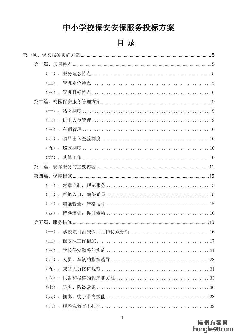 标题:中小学校(校园)保安安保服务标书投标方案(106页)