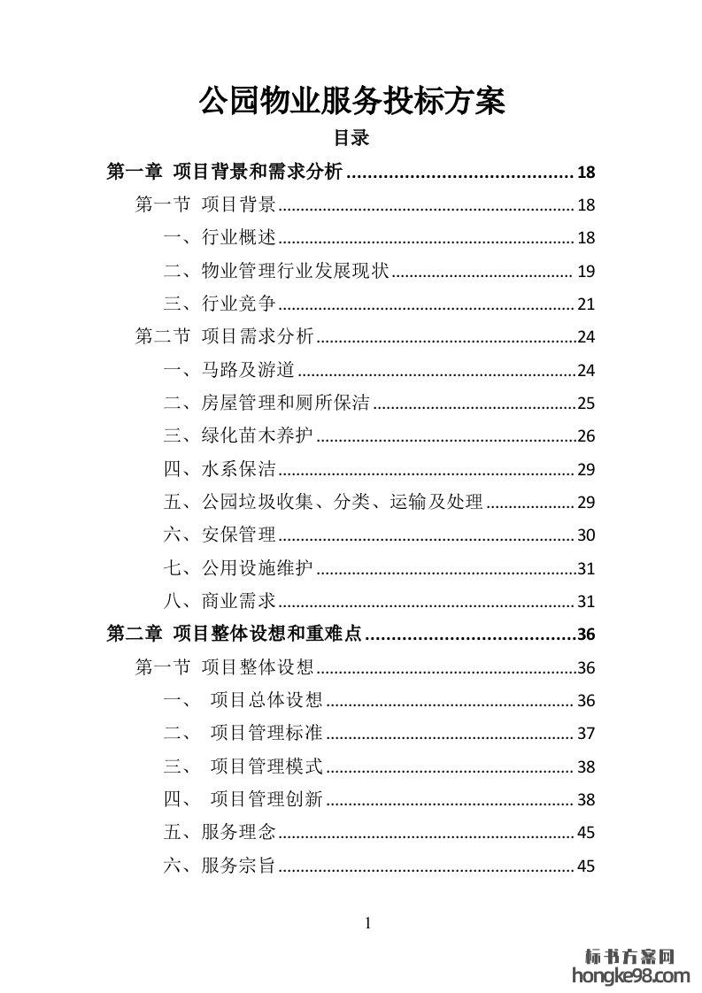 标题:公园物业服务投标方案455页