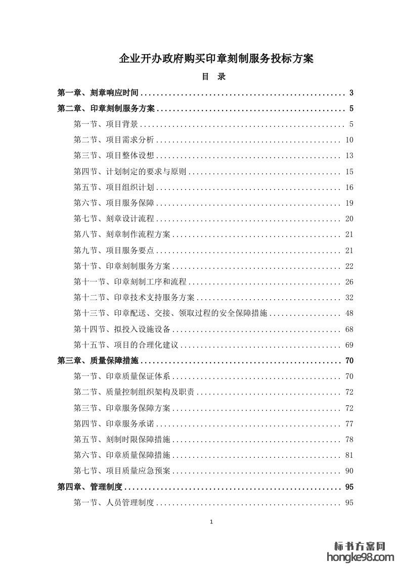 标题:企业开办政府购买印章刻制服务标书投标方案(166页)