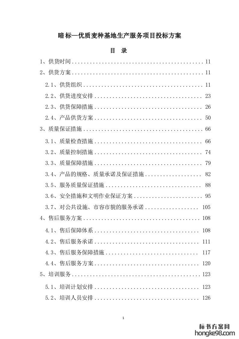 标题:优质麦种基地生产服务项目标书投标方案(187页)