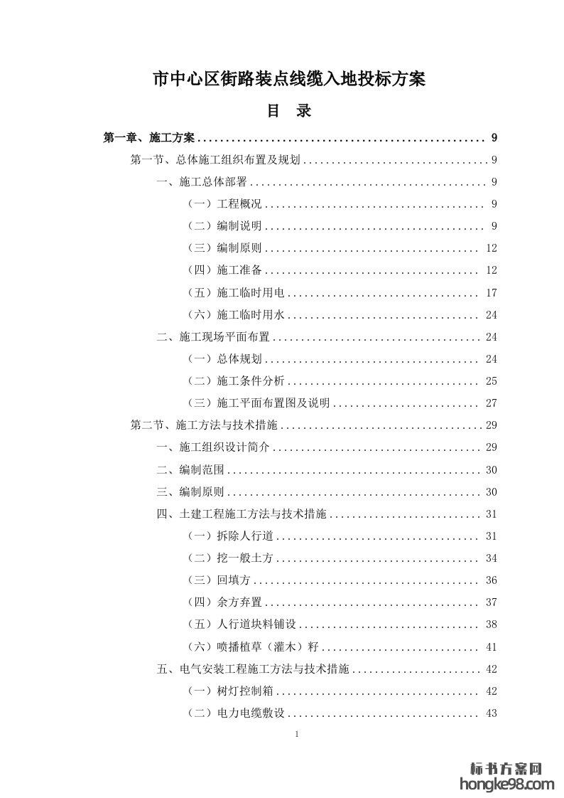 标题:市中心区街路装点线缆入地标书投标方案(509页)