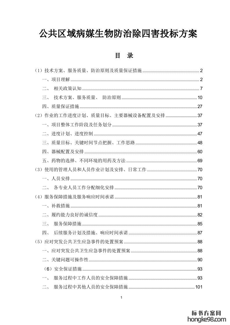 标题:公共区域病媒生物防治除四害标书投标方案(104页)