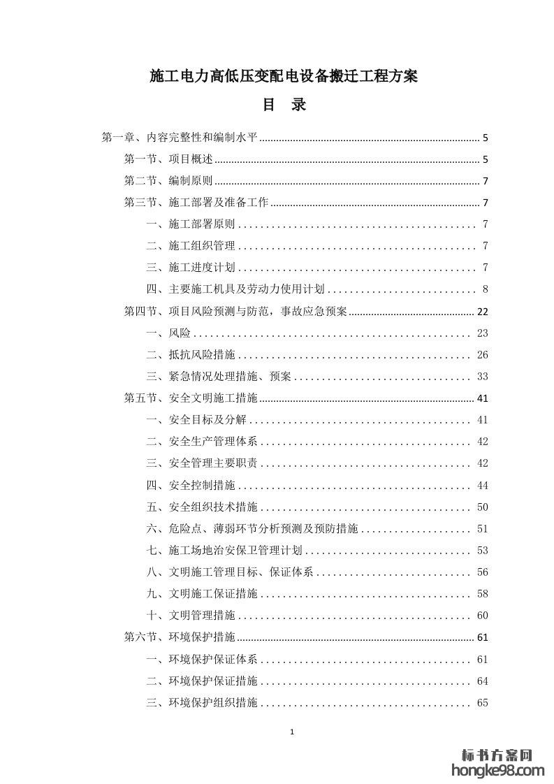 标题:施工电力高低压变配电设备搬迁工程方案(182页)