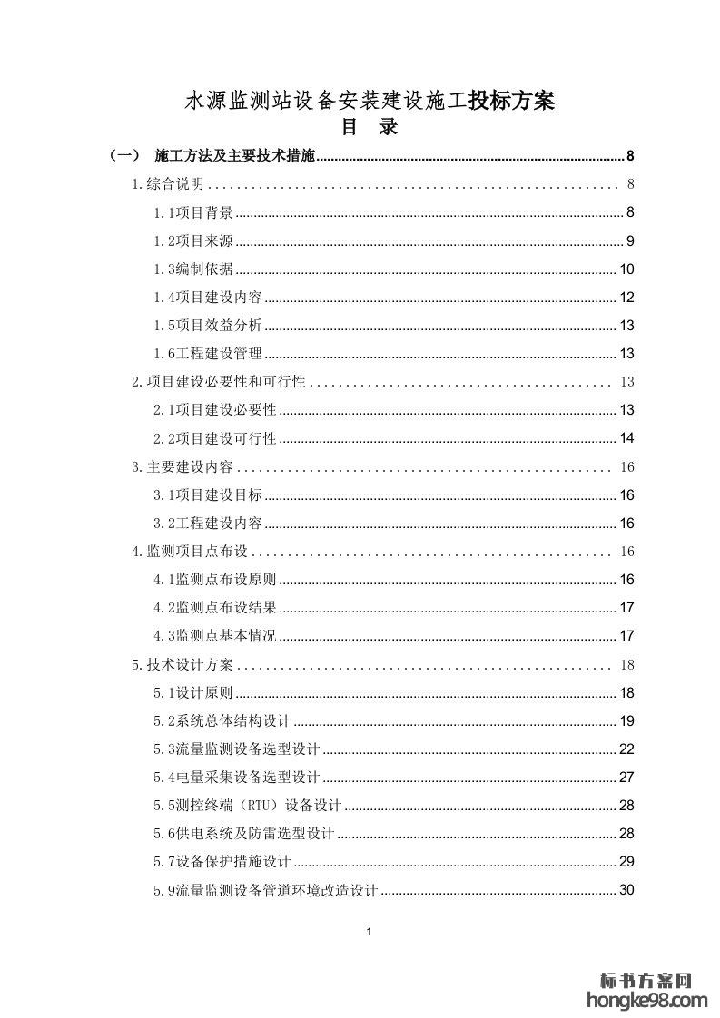 标题:水源监测站设备安装建设施工标书投标方案(307页)