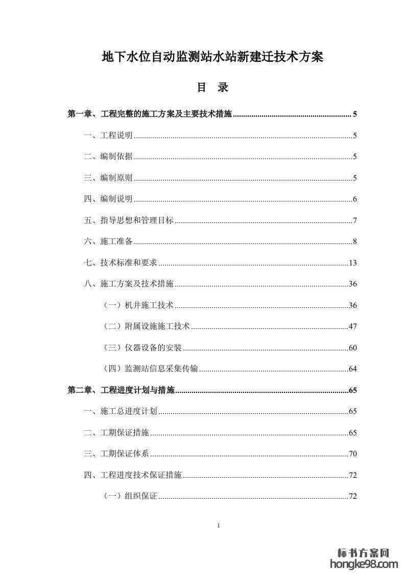 标题:地下水位自动监测站水站新建迁技术方案(147页)