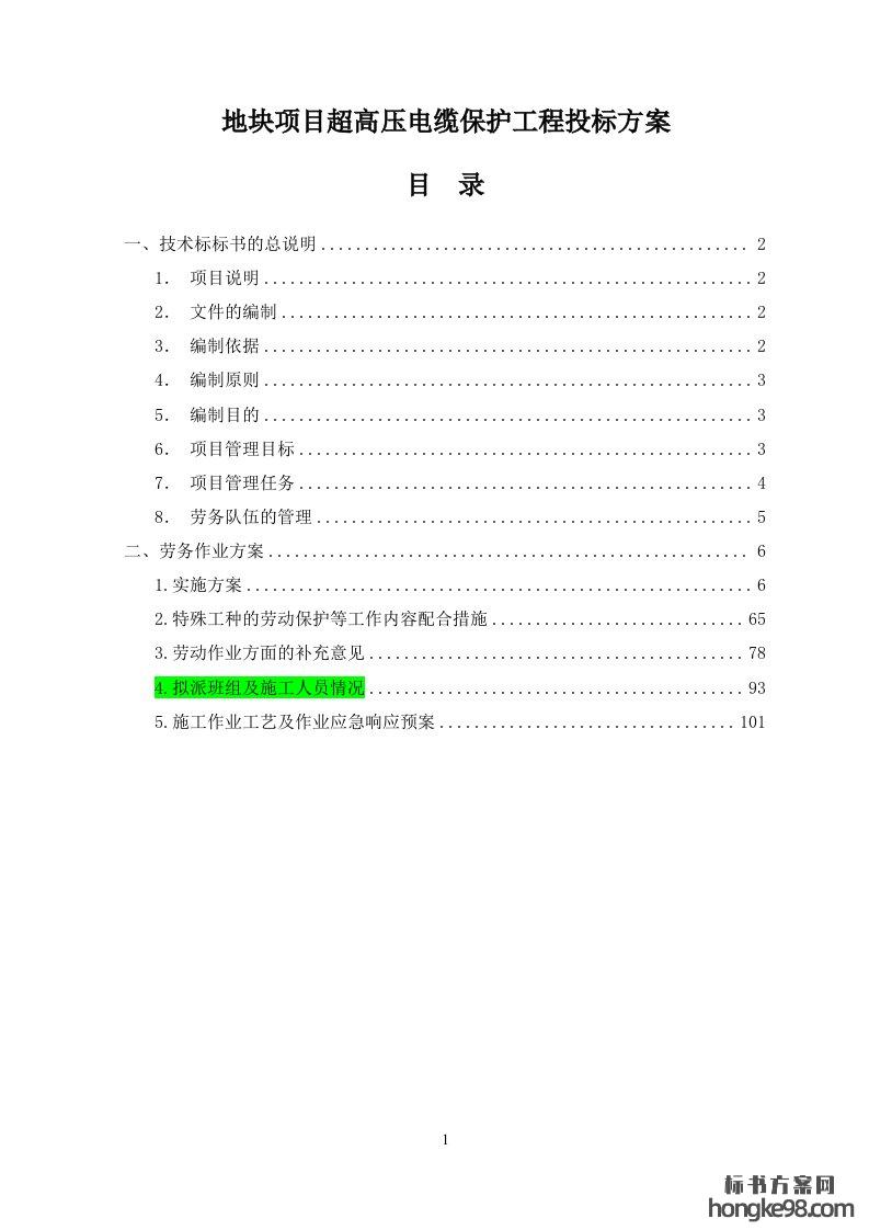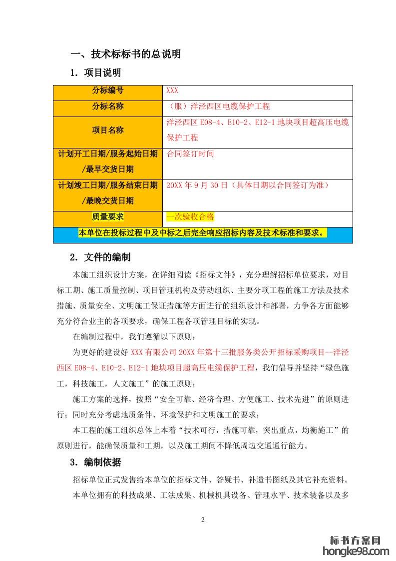 标题:图表地块项目超高压电缆保护工程标书投标方案(112页)