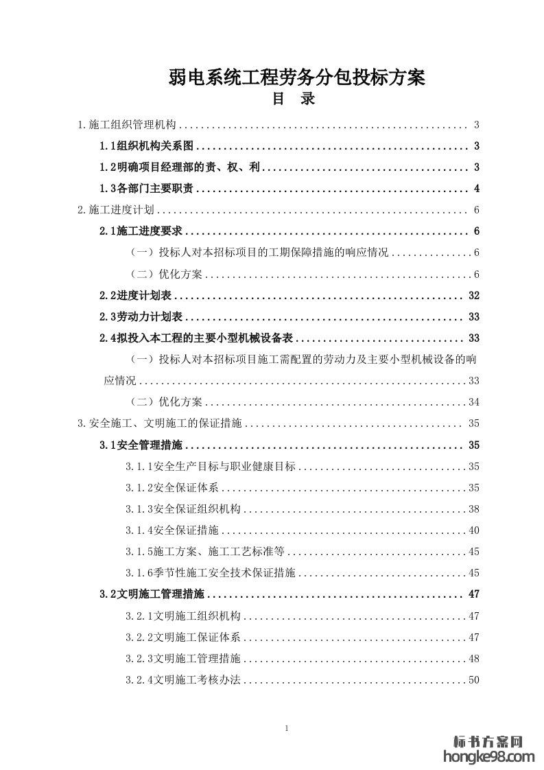 标题:弱电系统工程劳务分包标书投标方案(152页)