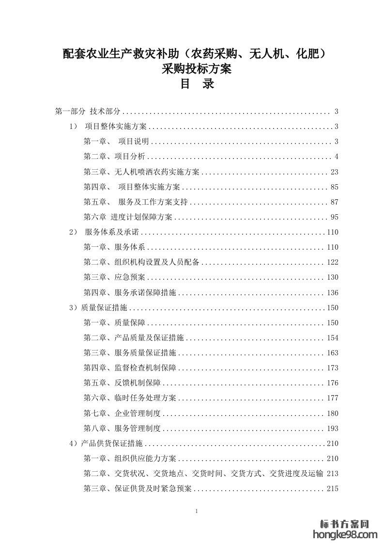 标题:配套农业生产救灾补助(农药采购、无人机、化肥)采购标书投标方案(298页)
