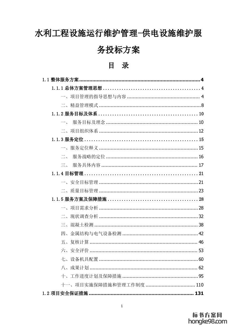 标题:水利工程设施运行维护管理-供电设施维护服务标书投标方案(241页)